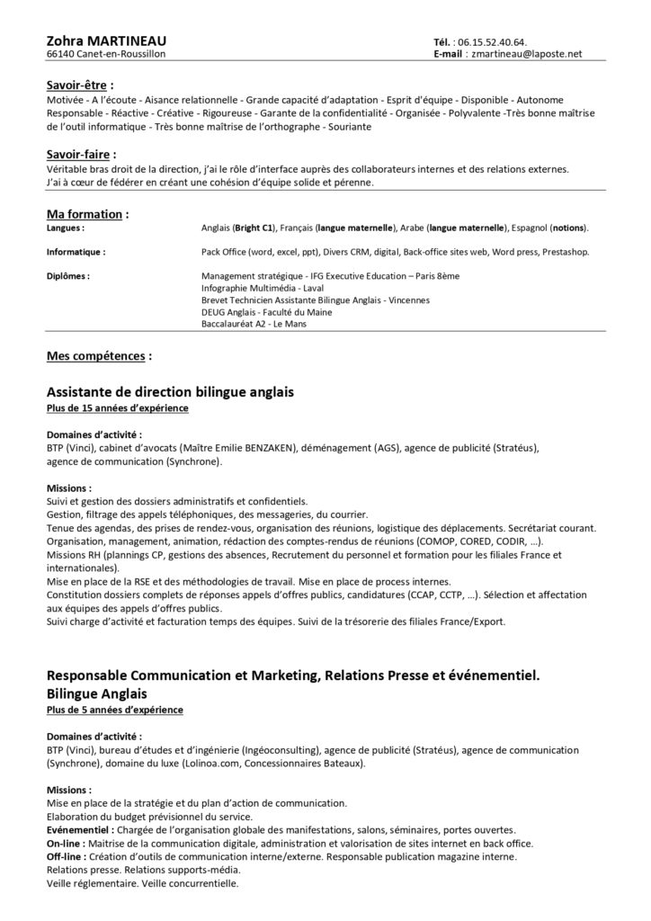 CV pour un poste d’attaché de direction